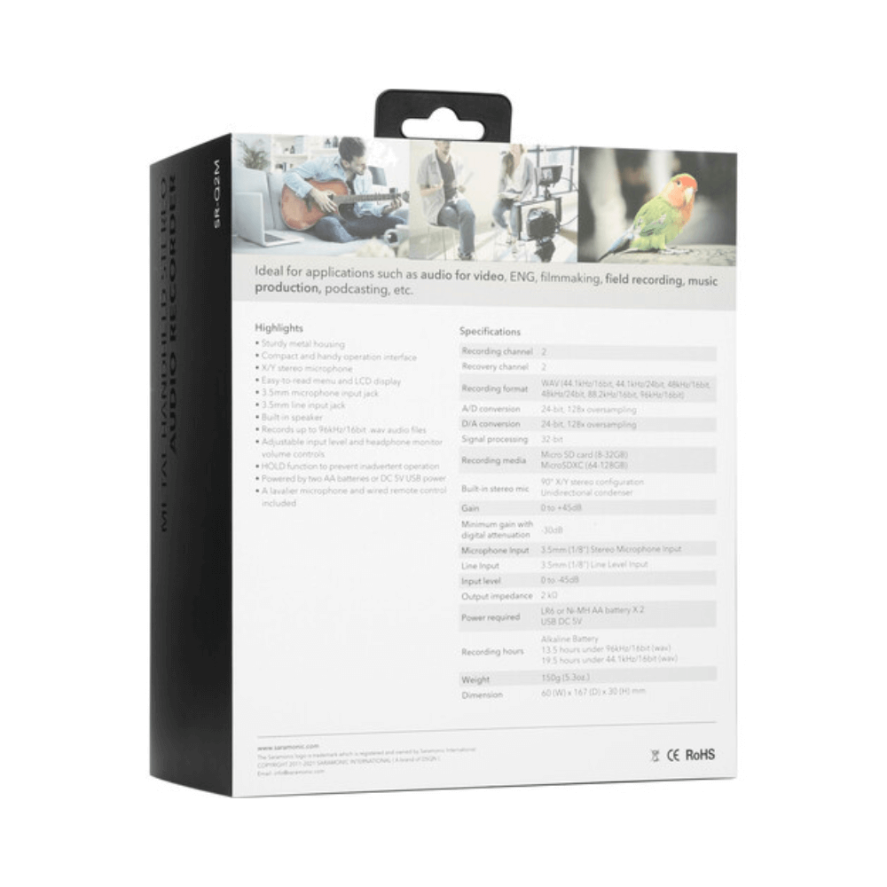Saramonic SR-Q2M là máy ghi âm cầm tay nhỏ gọn và nhẹ với kết cấu kim loại chắc chắn. Nó có một cặp micrô tụ âm thanh nổi chất lượng cao giúp dễ dàng thu được âm thanh phong phú, chất lượng phát sóng để sản xuất video, ghi âm nhạc, podcasting, báo chí, v.v.